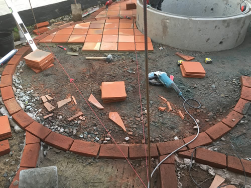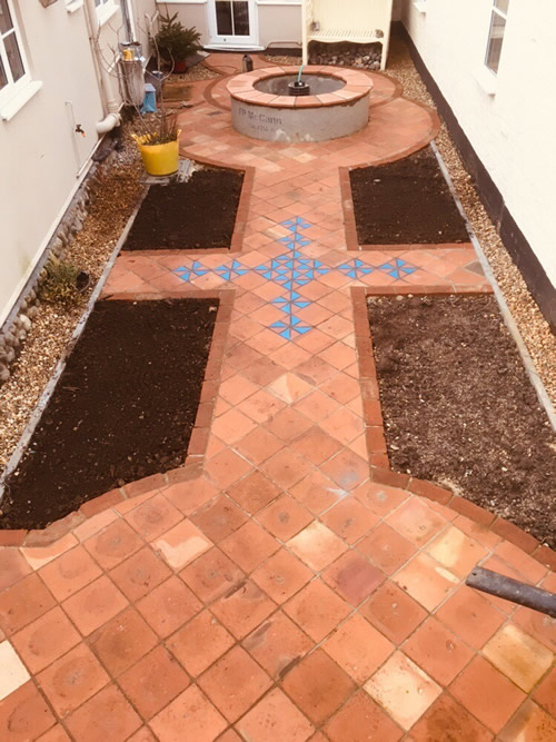 Creative use has been made of Garden Grade Suffolk Terracotta and Ely Red pamments (with a few odd colours too) combined with other tiles.