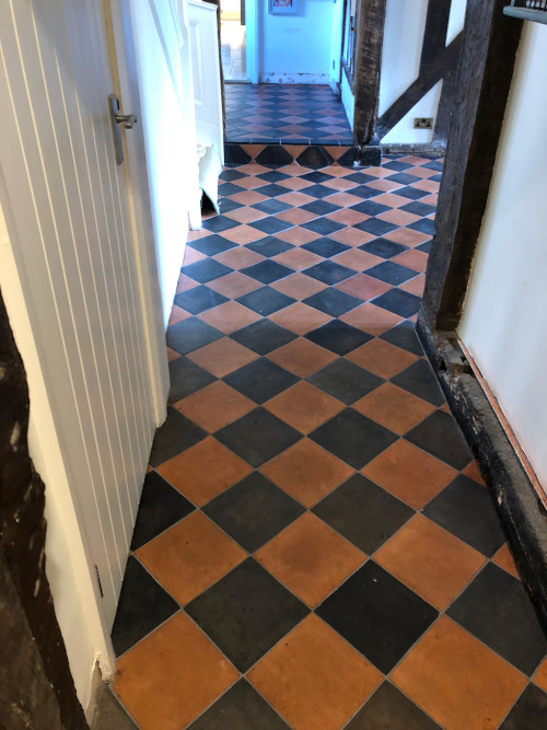 The pamments were treated with boiled linseed oil and antique wax to give a fitting rich patina for the beautiful historic listed building.
